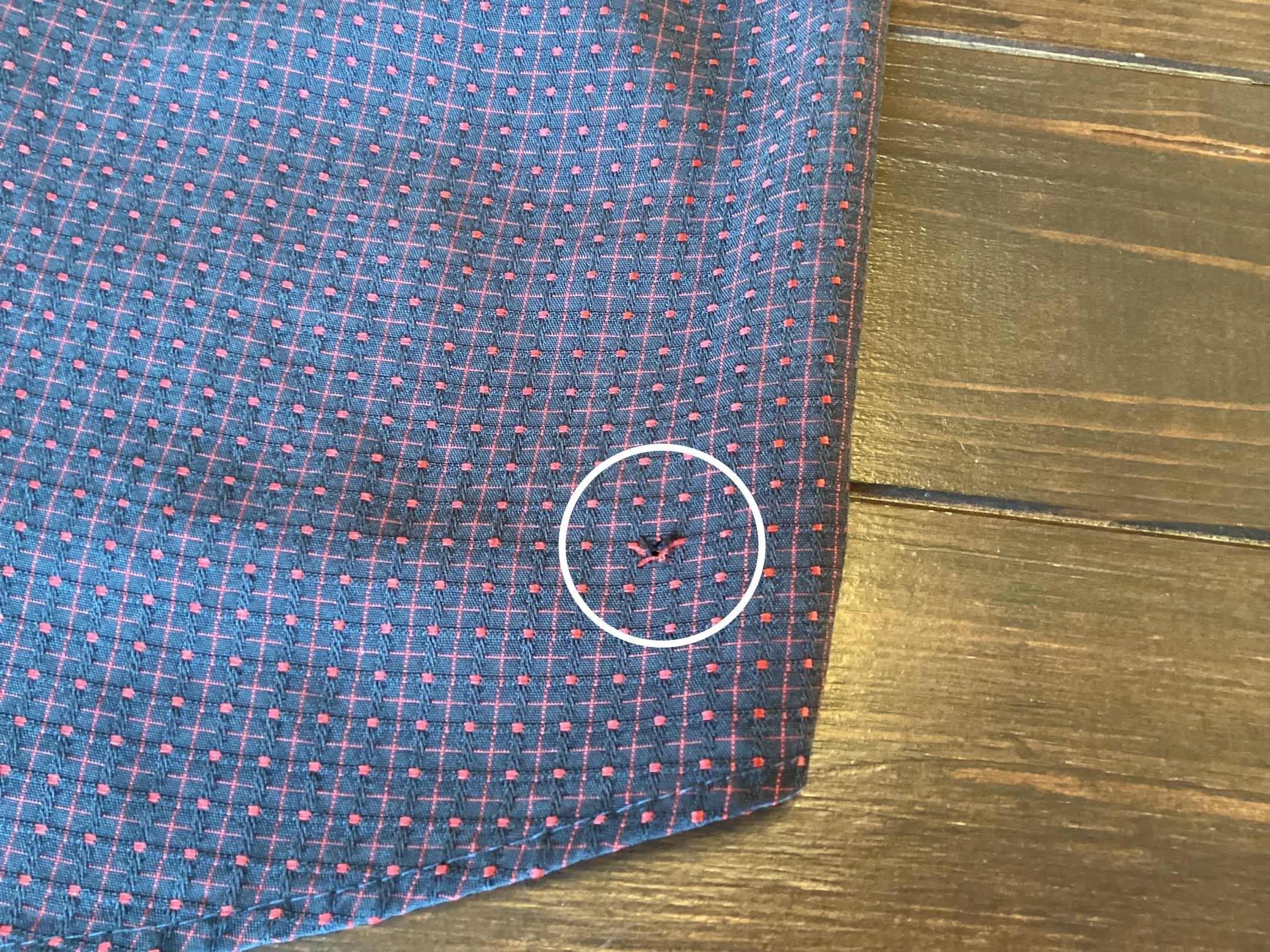 裾付近に小穴と袖口に少しダメージ、フロント部にほつれがございます。