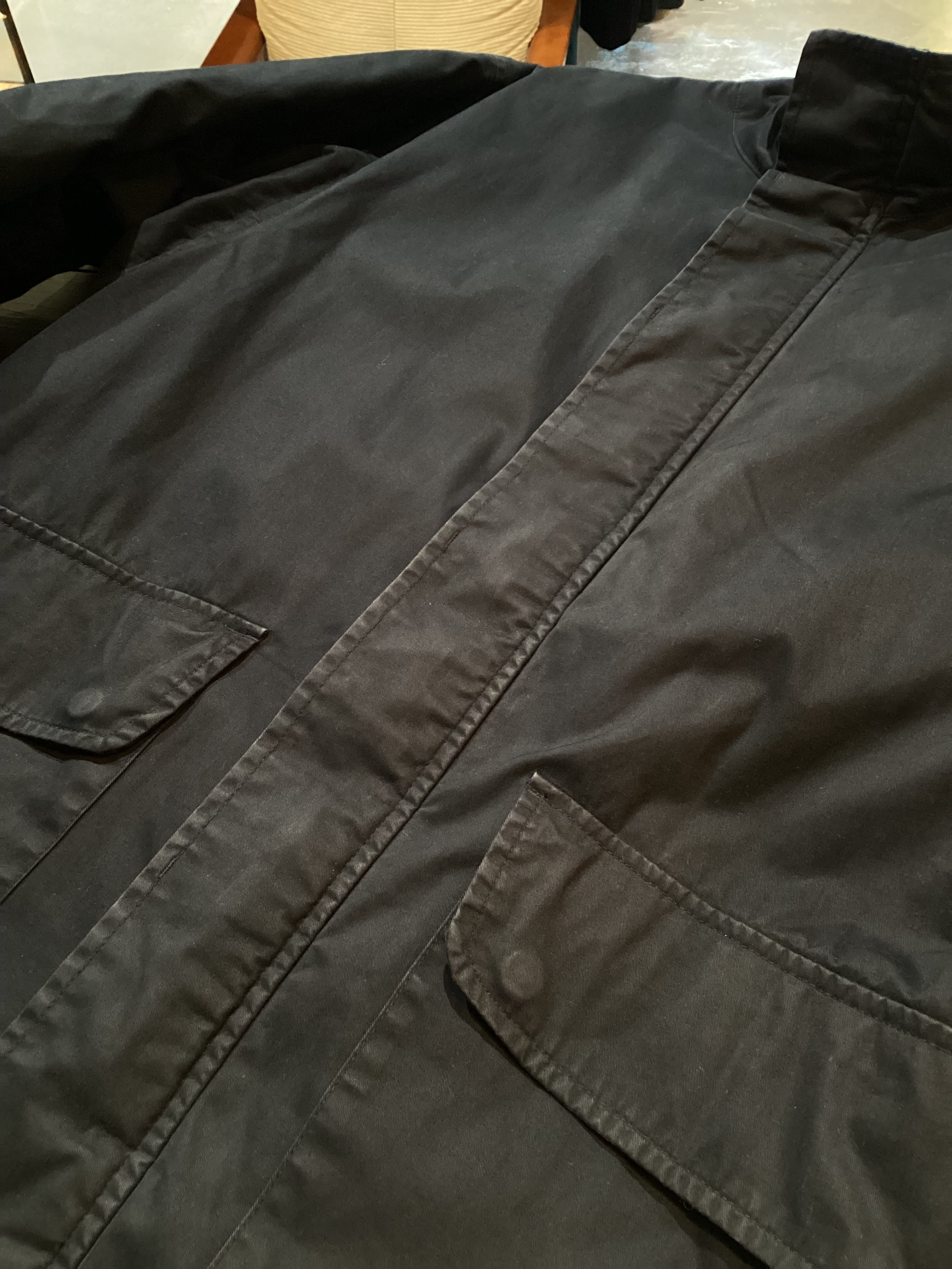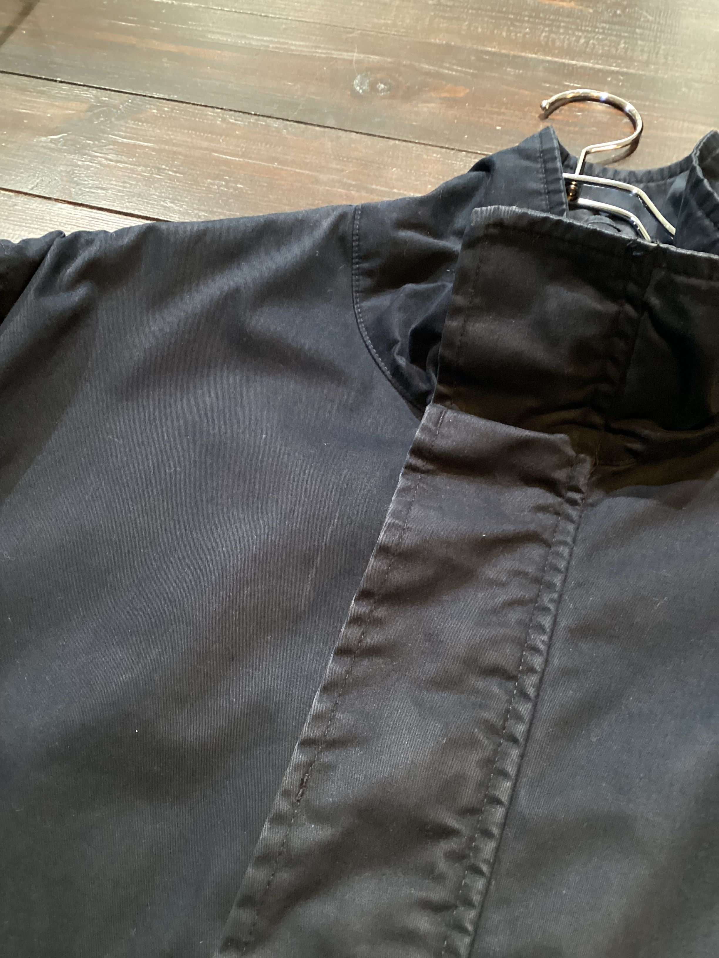 高密度のコットンクロスなので特有のあたりがございます。