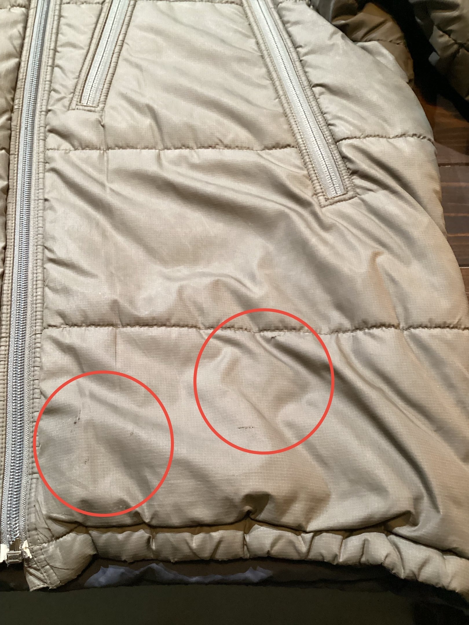 両袖口付近に数箇所小穴がございます。