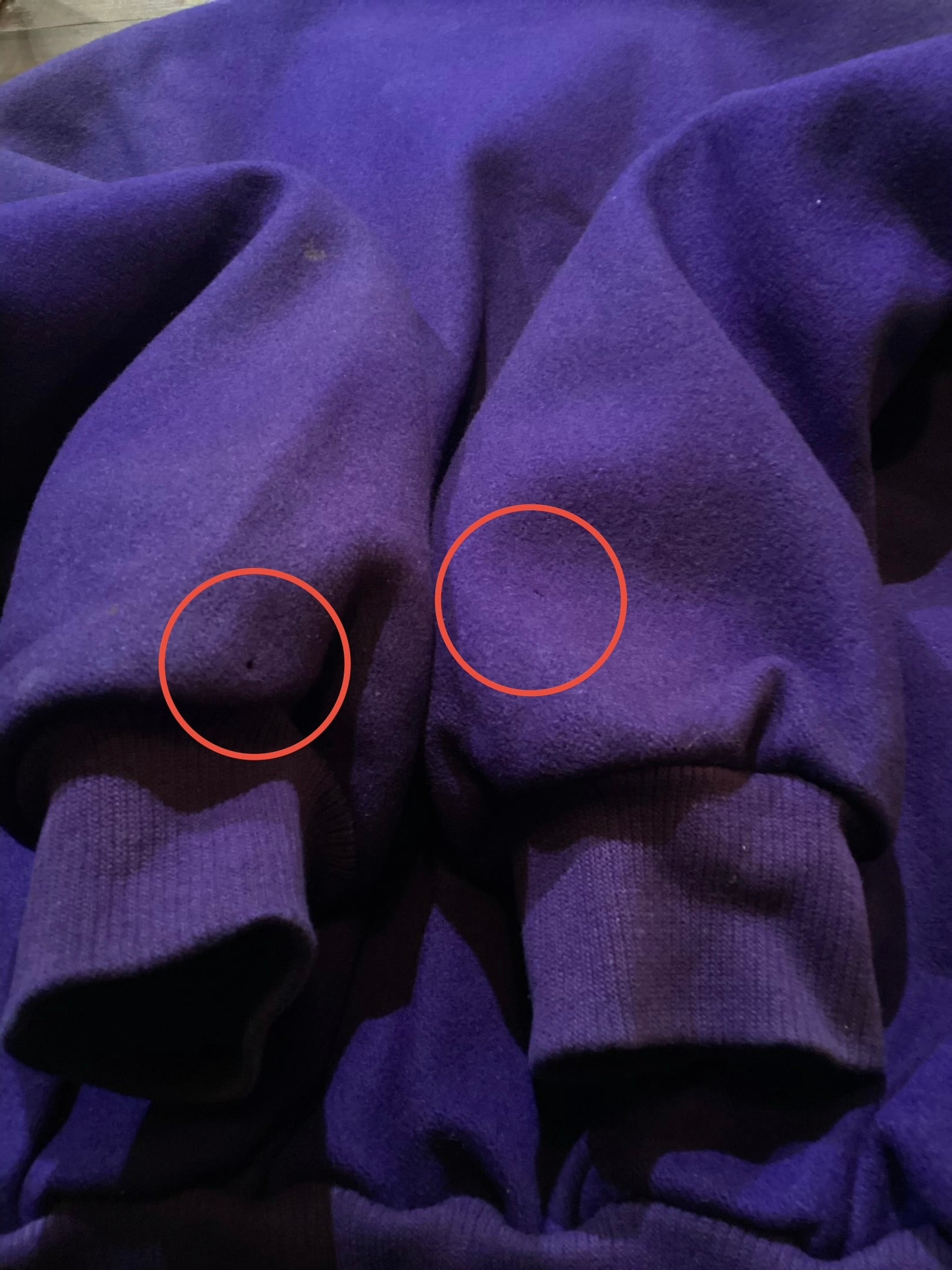 両袖に小穴と汚れがございます。