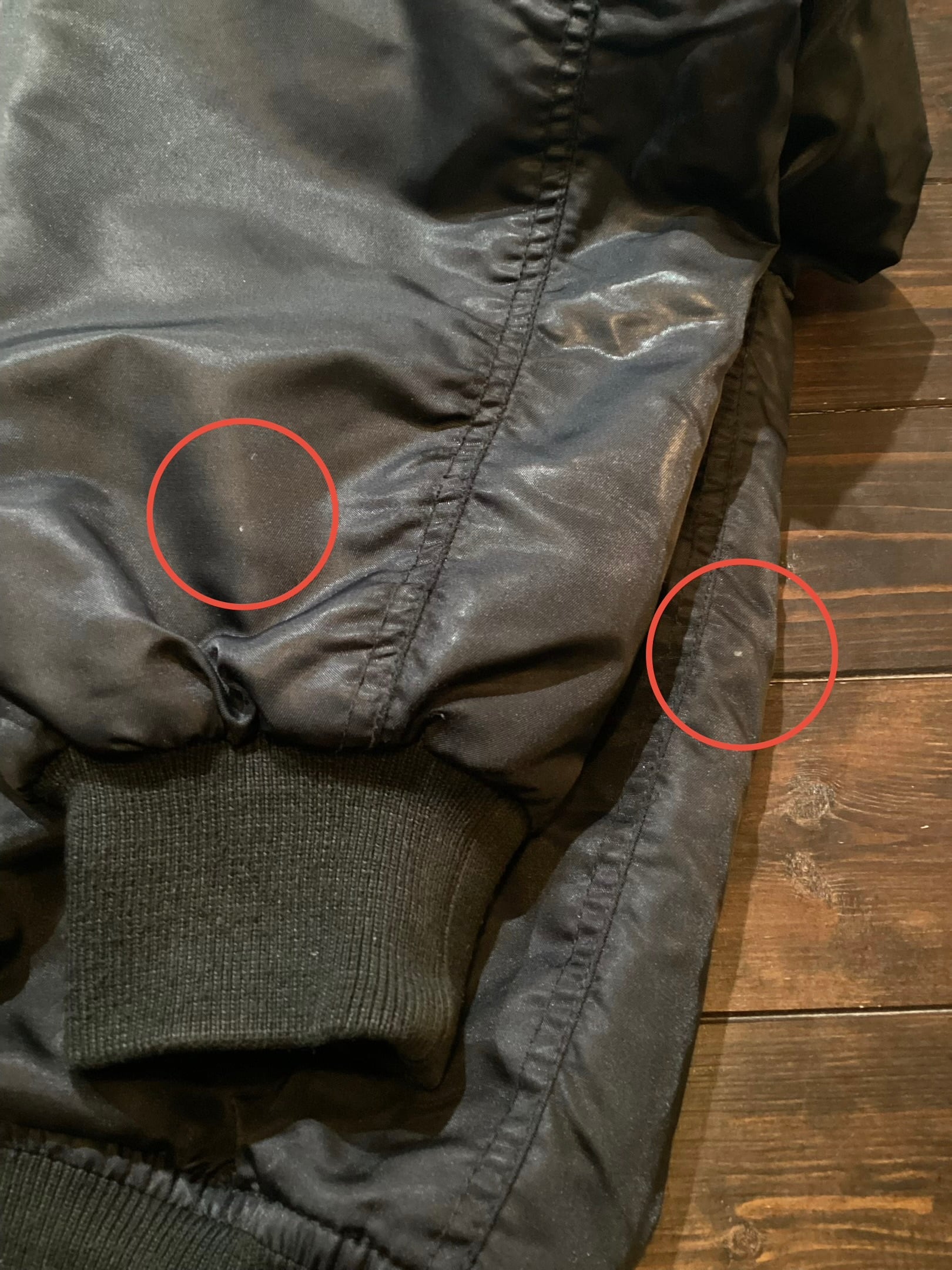 右袖付近と右腹付近に小さな汚れがございます。