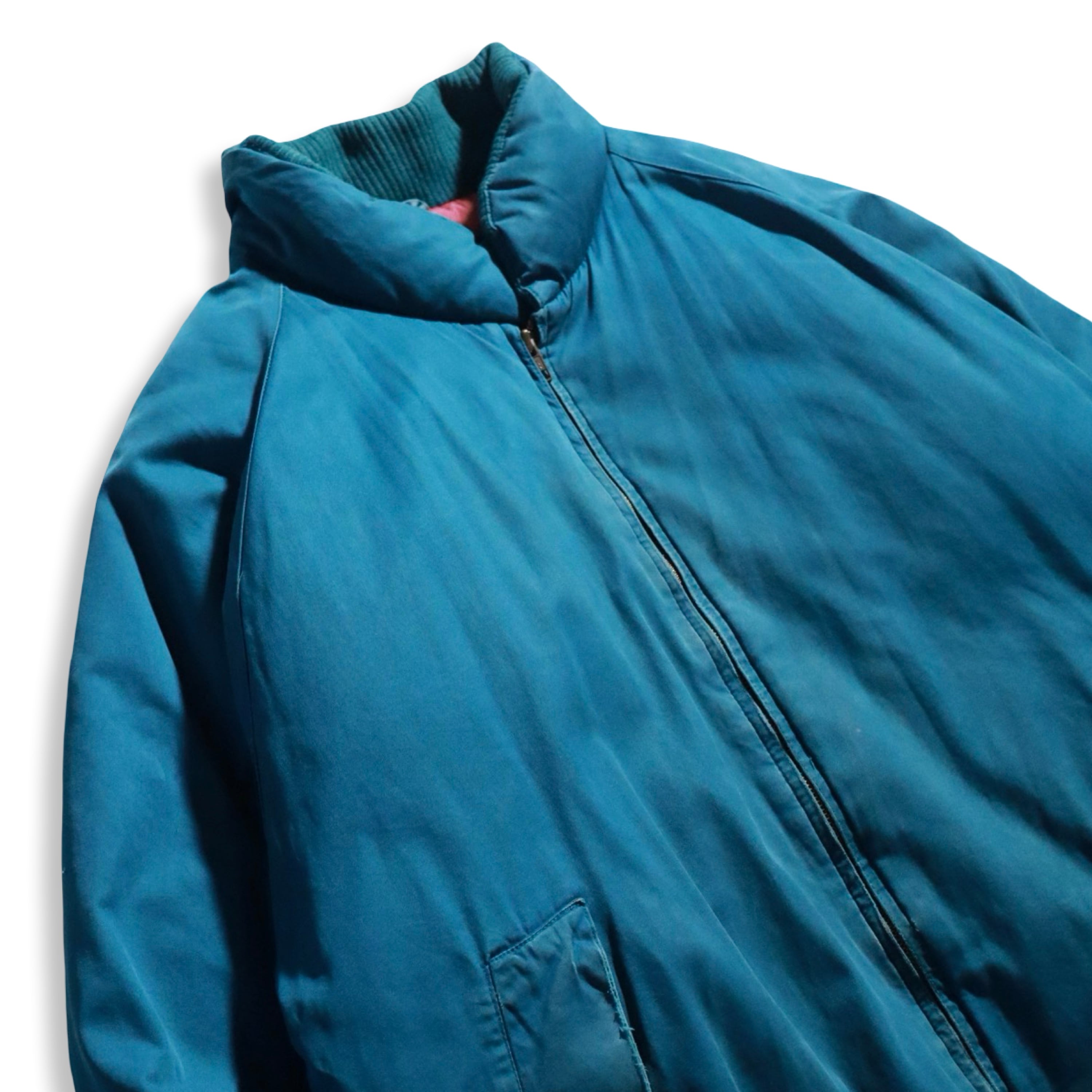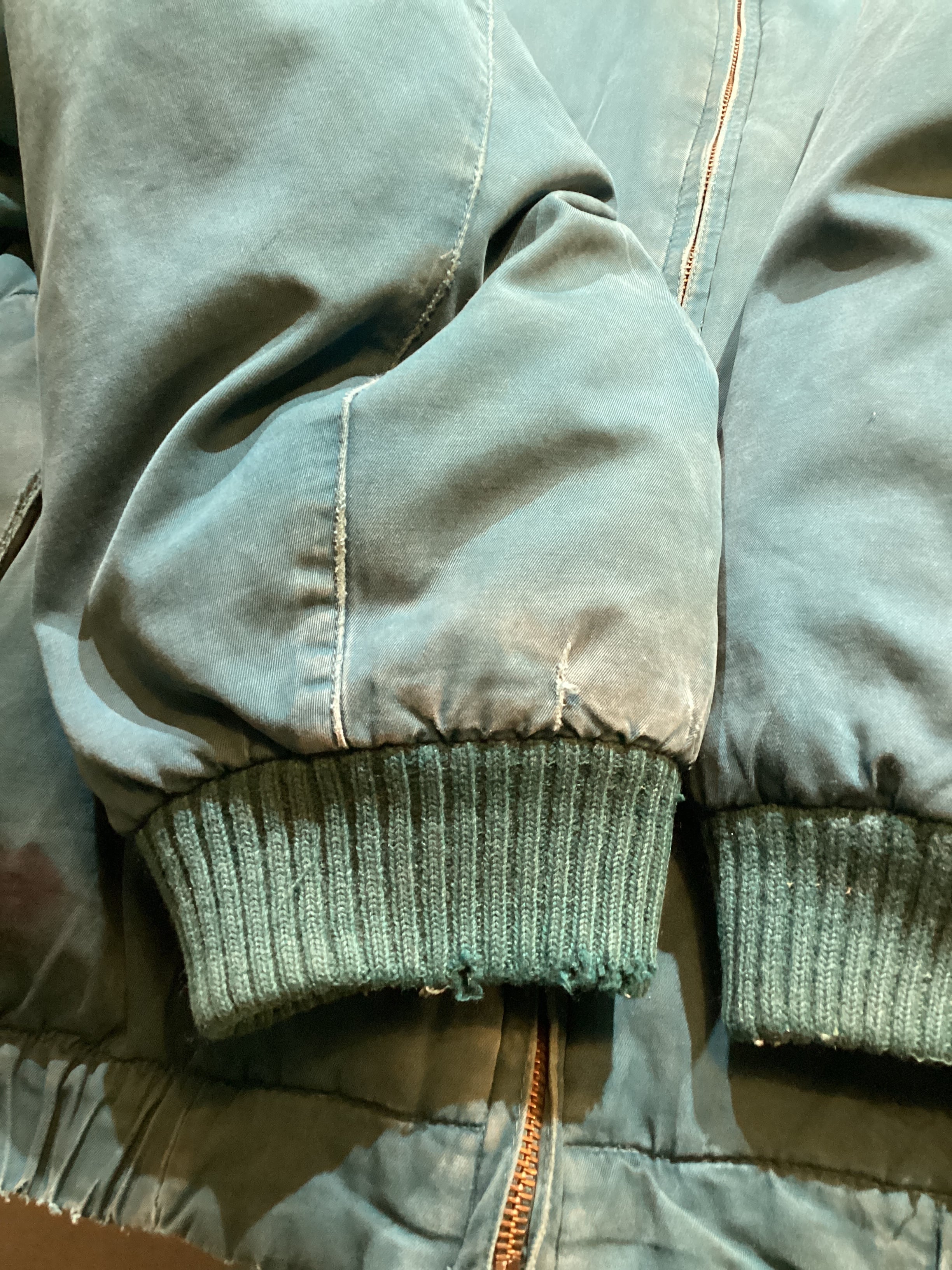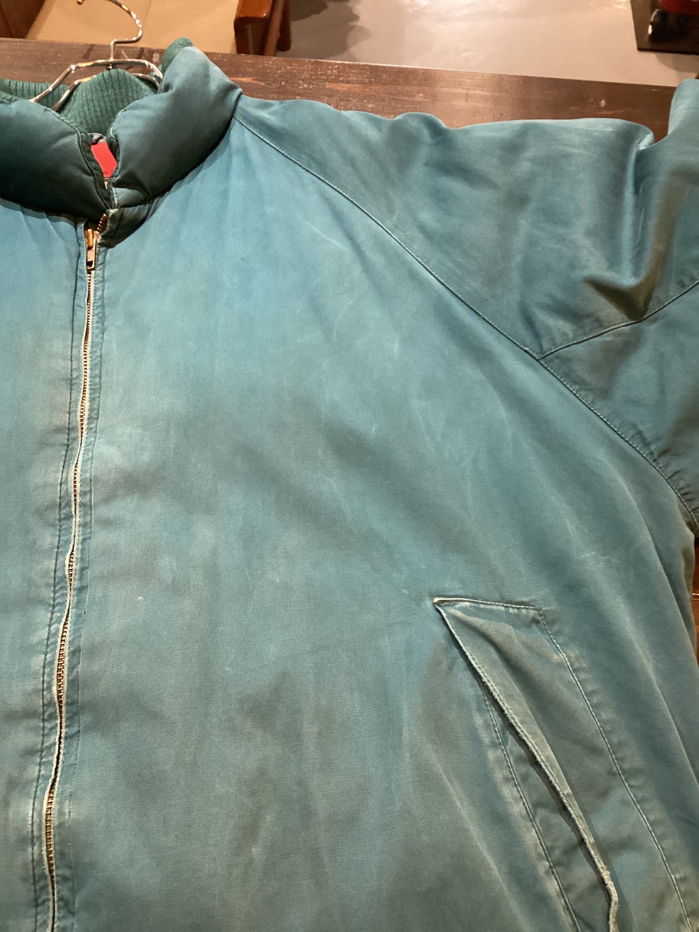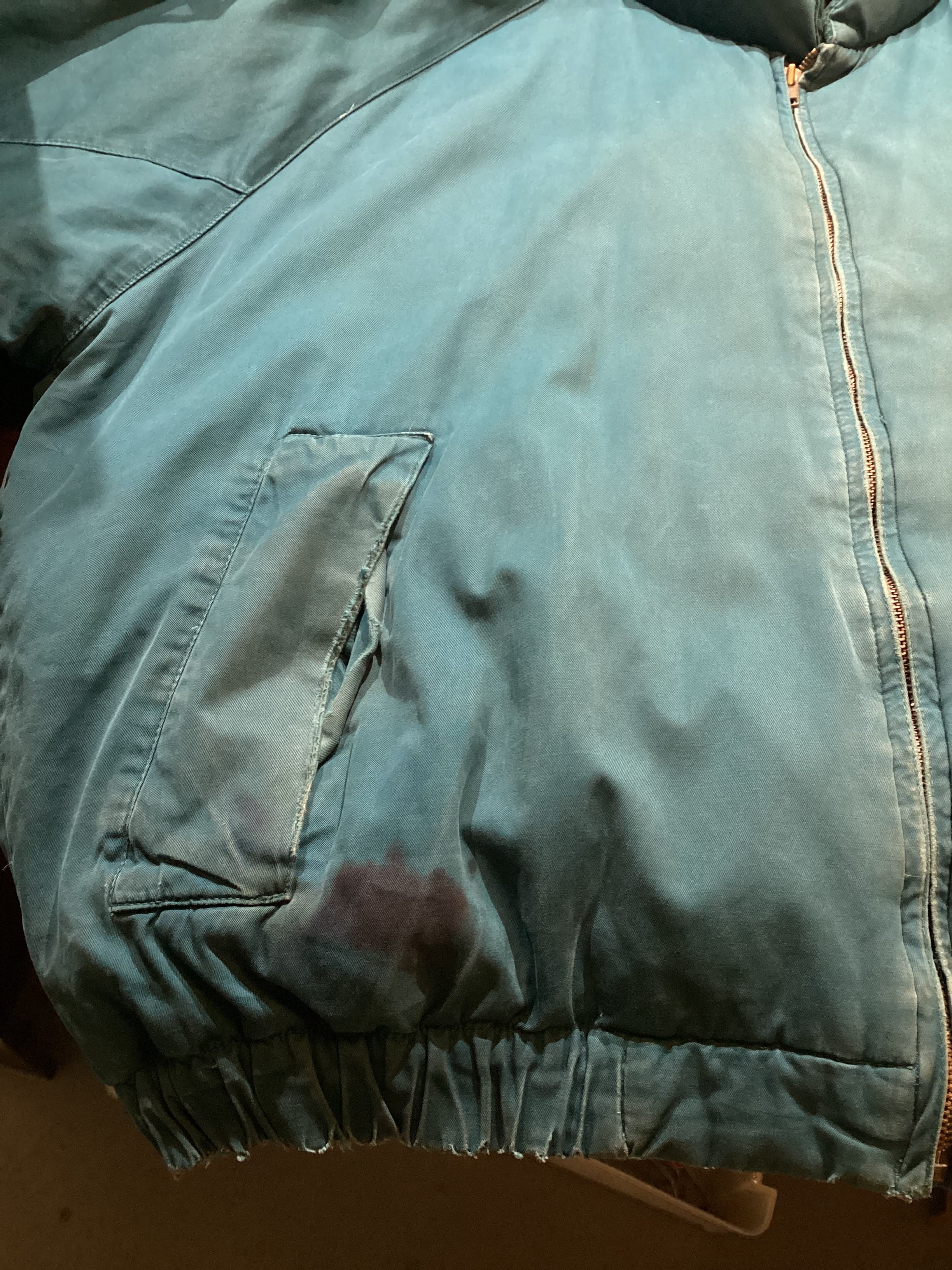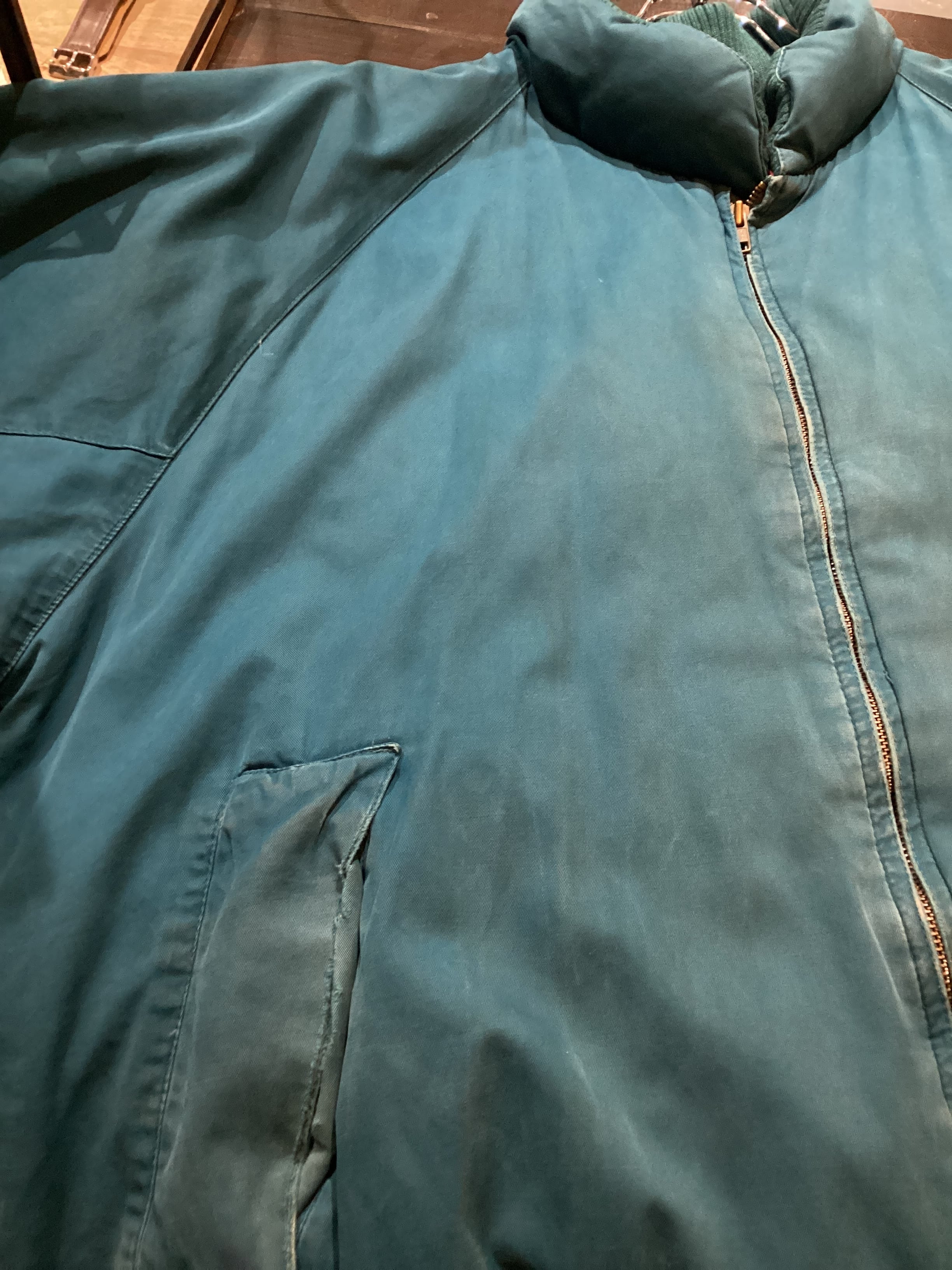 フロント、ジップ周りに擦れ、左胸に小さな汚れ、裾付近にインク汚れがございます。