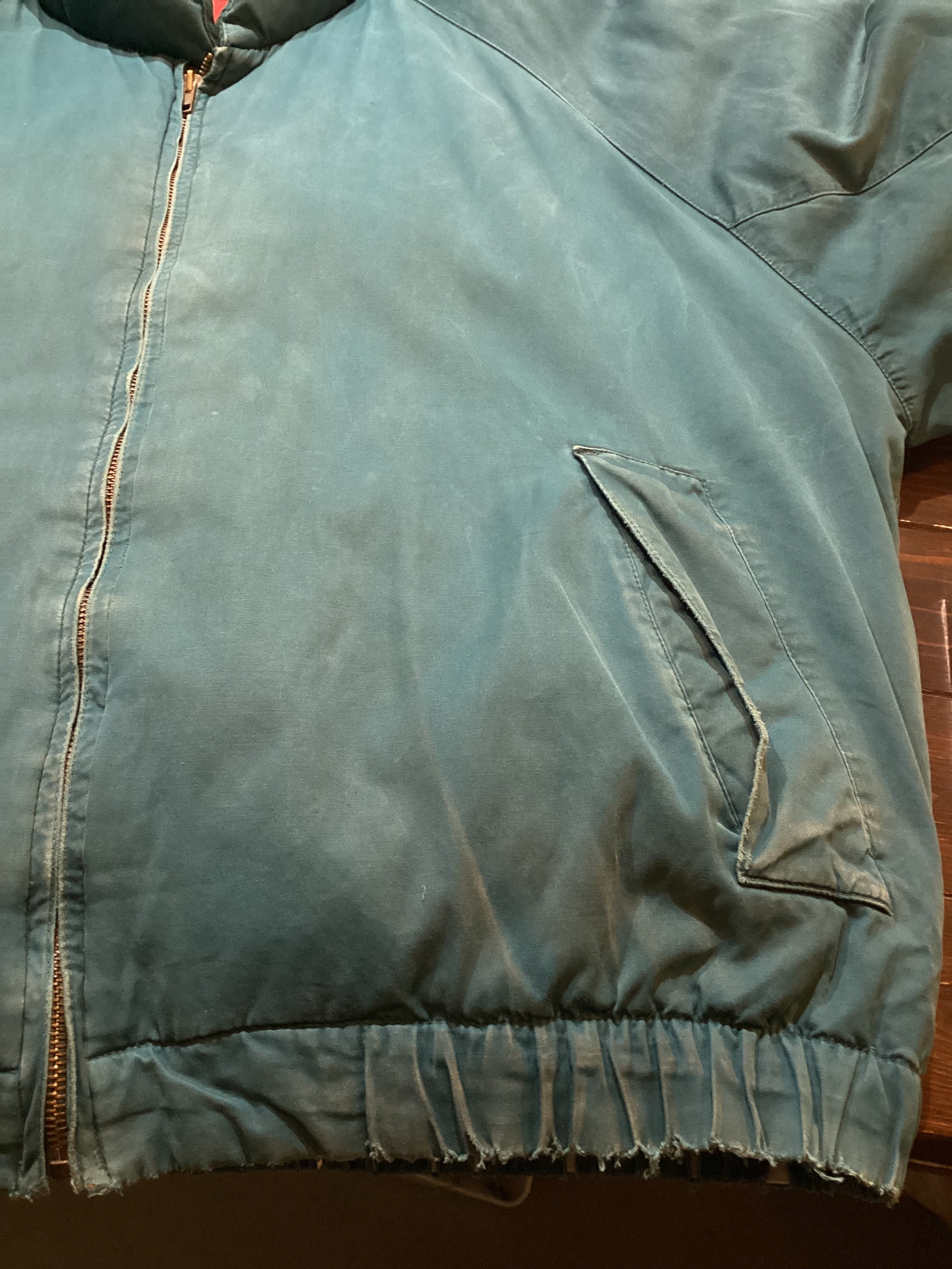 右ポケットの縫製部分と裾周りに擦れがございます。