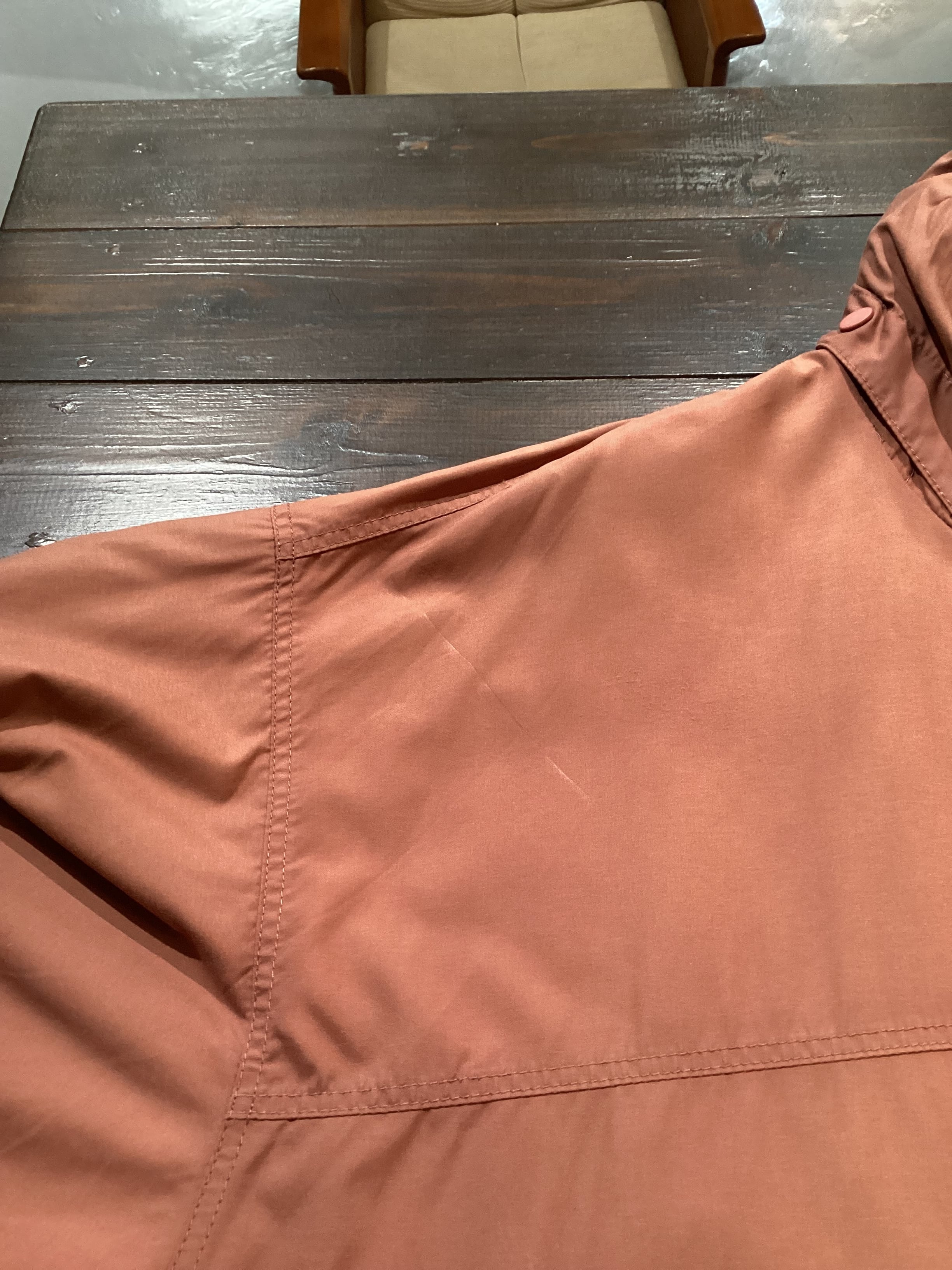 一番上のスナップボタンが欠けて止められません。ベルクロで特に着用に差し支えはございません。