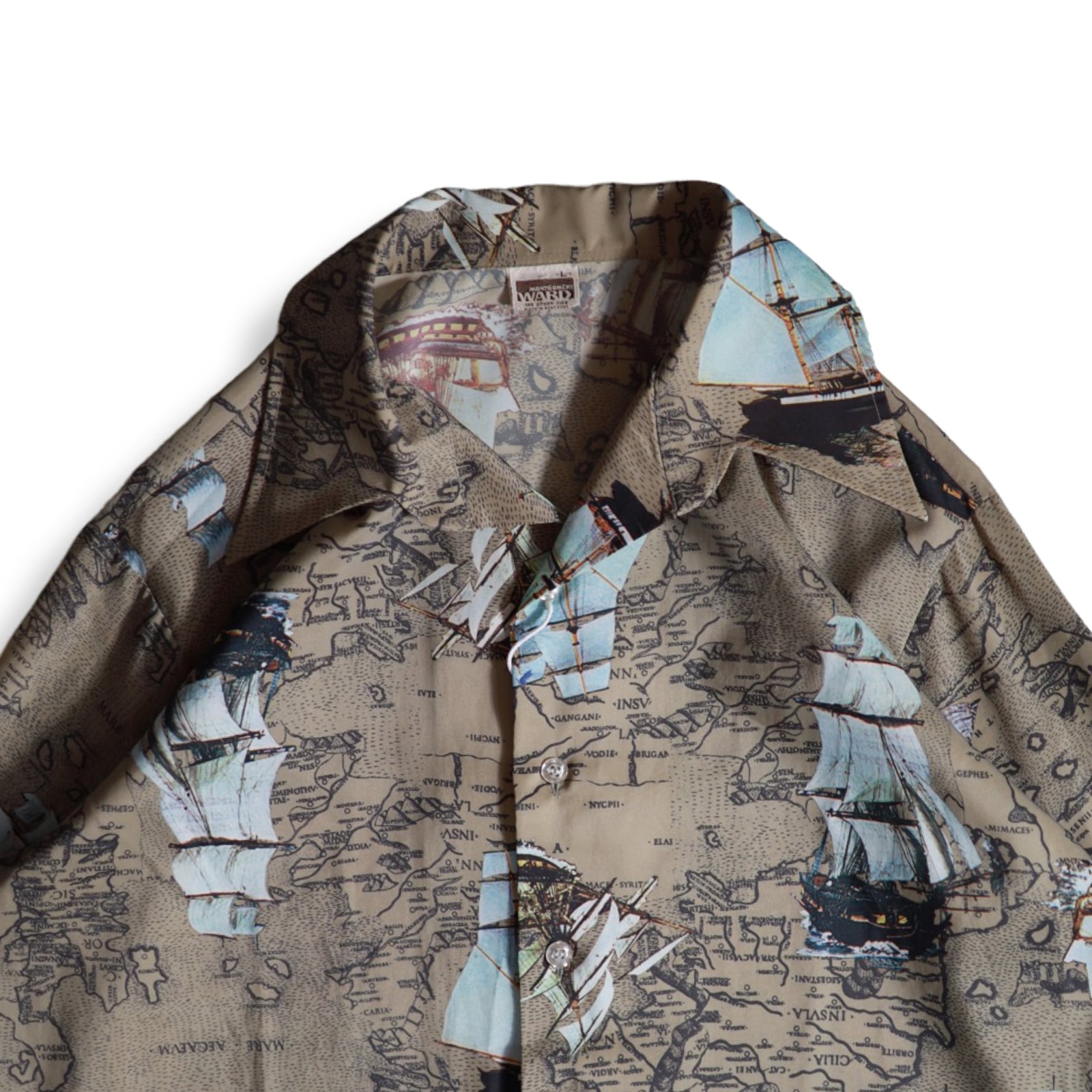 Montgomery Ward Open Collar Sihrt “Map Patten”